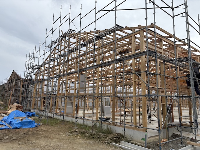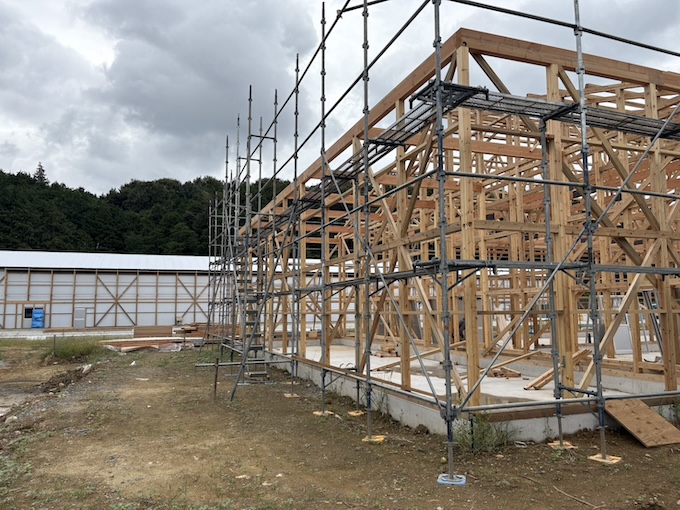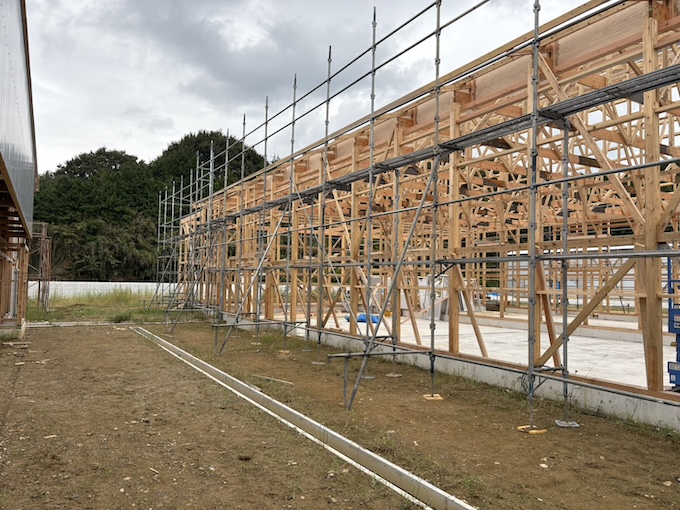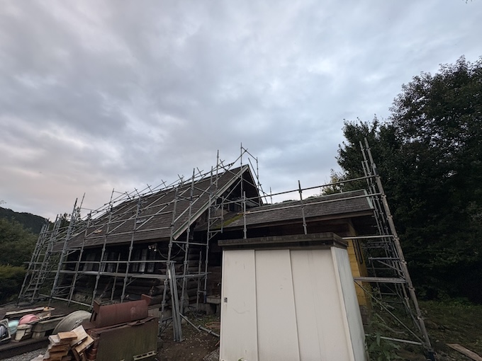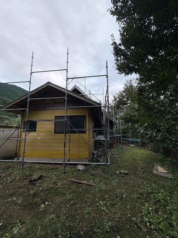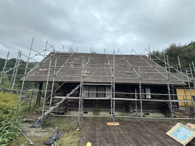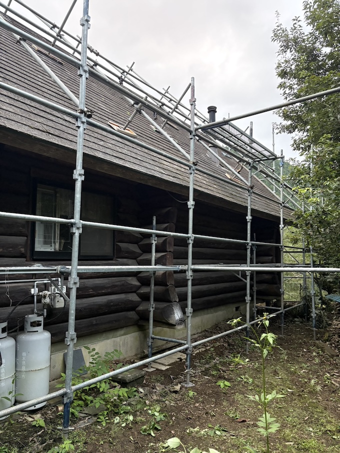 鹿沼ログハウス/足場工事、屋根・壁・塗装工事、目地撤去及び新設工事